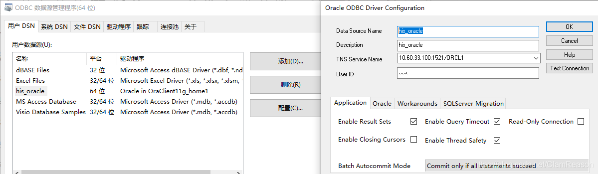 本机要装Oracle Client客户端,装了客户端以后ODBC数据源里才可以配置连接数据源: