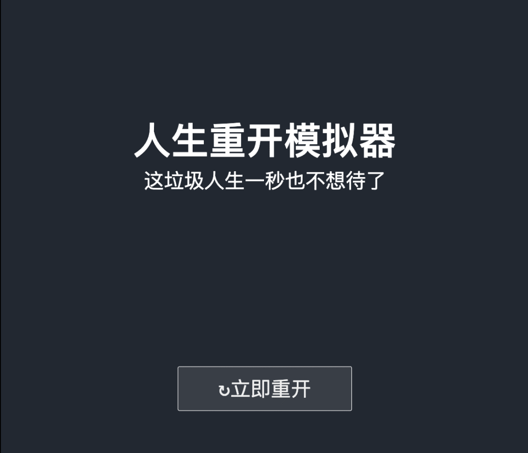 年底的时候,你会见到很多年度总结,有时候难免会想着,如果人生能和游戏一样重新开始,再来一局该怎么样?lifeRestart 是一个非常普通的文字游戏,甚至很快流行之后不再出现在大家的视线中。但,如果有时候不如意,也许它能给你一份力量再继续。人生嘛,难得再重头,所以当下才显得珍贵。