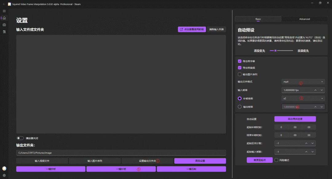 6、Squirrel-RIFE:中文自动补帧工具。该项目是基于 RIFE 算法的补帧软件,可用于去除动漫卡顿感。具有无需手动设置、高质量输出、速度快等特点,适用于 Windows 10 及以上操作系统。