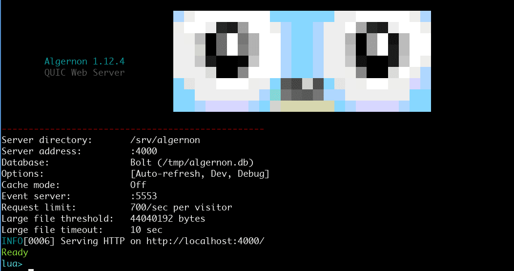 9、algernon:小型、独立的 Go Web 服务器。该项目是用 Go 编写的 “快餐” Web 服务器,采用 BoltDB、Redis、MySQL 或 PostgreSQL 作为数据库,内置 Lua 解释器。所有功能全在一个独立可执行文件中,支持 Markdown 渲染、Lua 脚本、请求限制、用户和权限等。