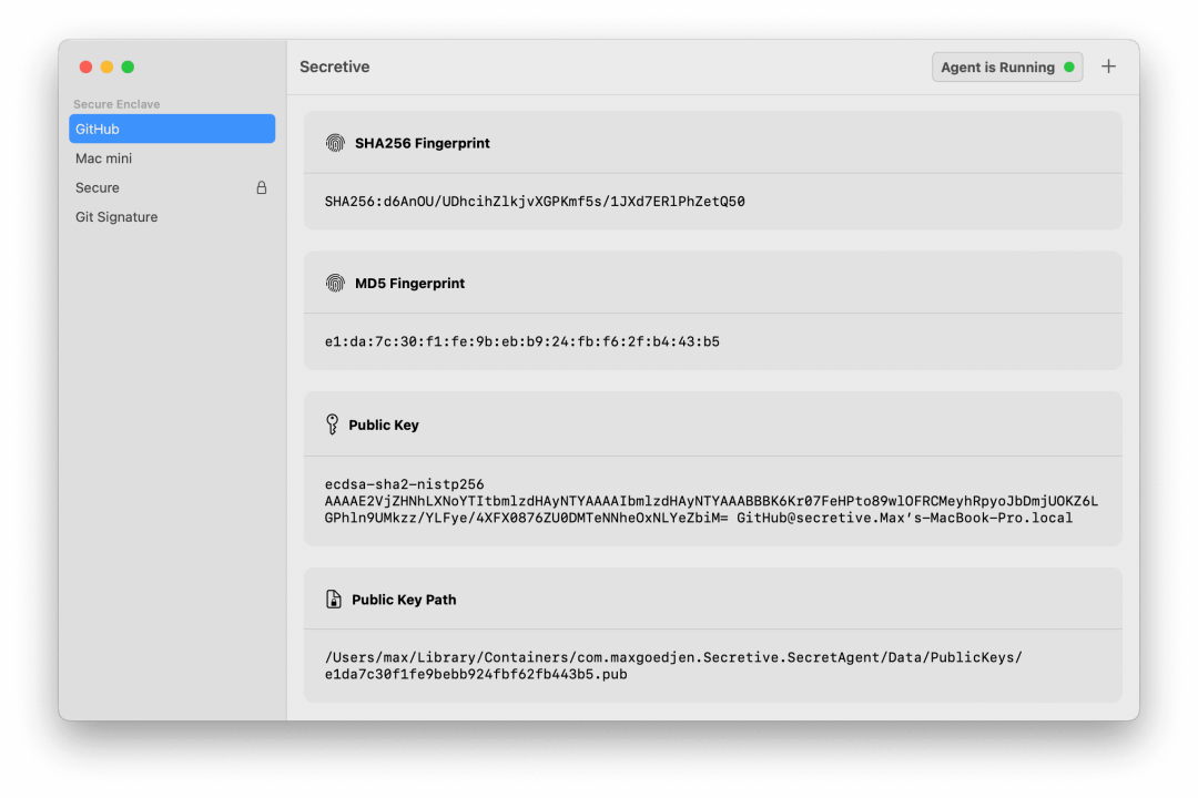 29、secretive:一款存储和管理 SSH 密钥的应用。该项目是可以将 SSH 密钥存储在苹果芯片安全隔离区(Secure Enclave)的工具。安全隔离区是指集成到 Apple 片上系统 (SoC) 的专用安全子系统,它独立于主处理器,可提供额外的安全保护。