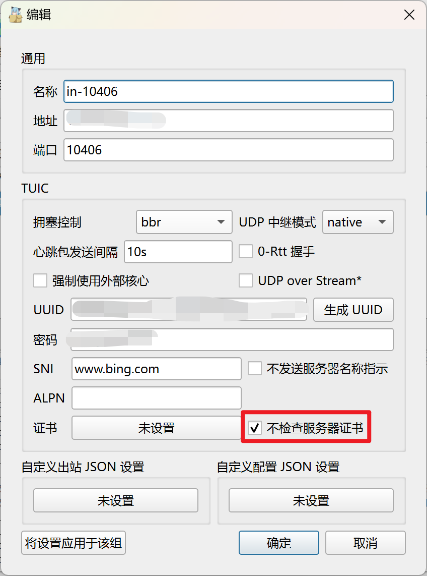 - 在客户端节点设置中,将 “不检查服务器证书” 选项勾上即可