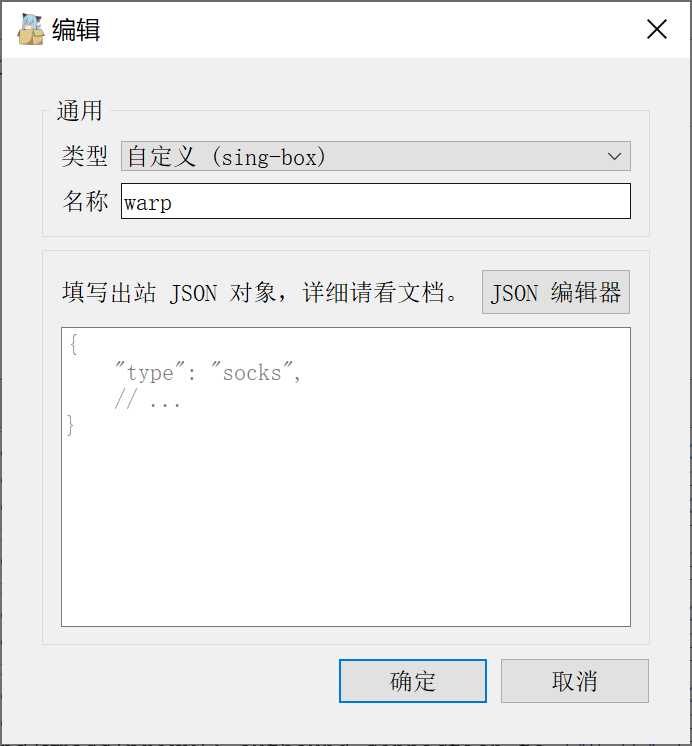 - 类型选择 “自定义(Sing-box)”,名称自定义,然后底下的 json 内容可参考下方的模板【主要是替换优选 Endpoint IP、公私钥和内网 IP 地址】