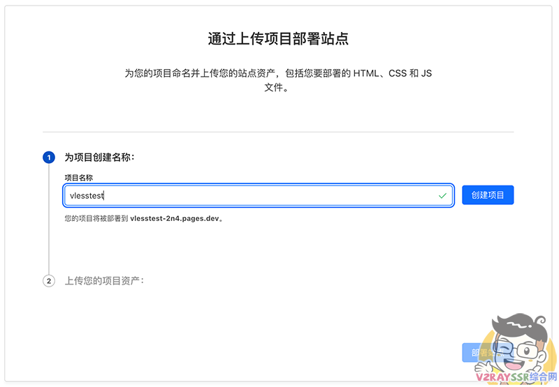 和刚才的方式一样,登录 CloudFlare ,来到 Workers 和 Pages ,和刚才不一样,我们需要点击 Pages ,点击 使用直接上传创建 – 上传资产。