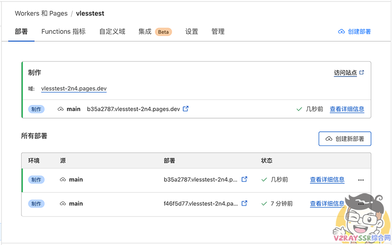 回到项目,找到 部署,点击下面的 创建新部署,再次上传刚才的 worker.zip 文件,保存并部署!