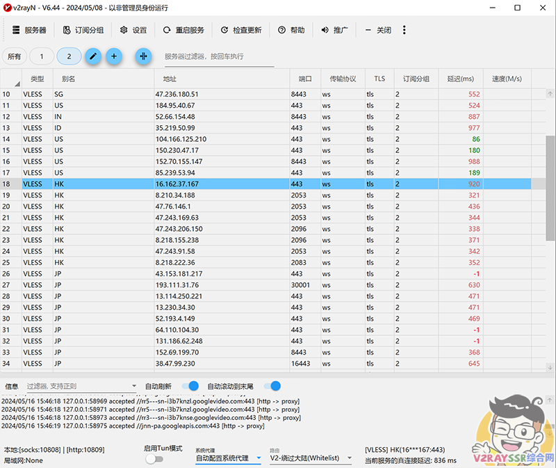 订阅完成,会多了很多节点,其实都是一个节点,只是用了不同的 IP。原理和刚才初级部署是一样的,只是自动进行了 IP 的优选!还是很方便的。